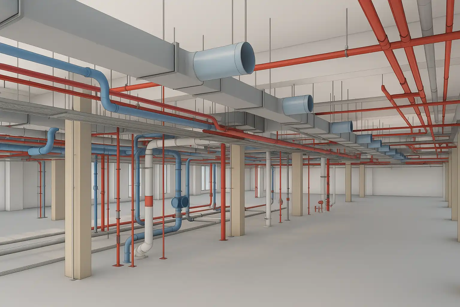 Full MEPF coordination for a 12-story healthcare facility with complex mechanical, plumbing, and electrical systems. Integrated HVAC layouts, medical gas pipelines, and fire protection networks. Clash detection and resolution performed using Navisworks Manage with weekly coordination meetings.